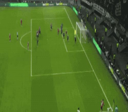 开场只有5分钟,17岁的小将卡尔钟摆式过人甩开防守,面对包夹上演精彩世界波,打进欧冠处子球。