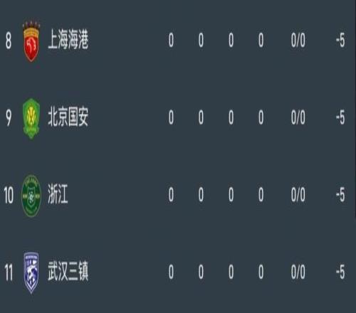 距开赛36天!中超积分榜:蓉城天胡开局,申花垫底,海港国安5分